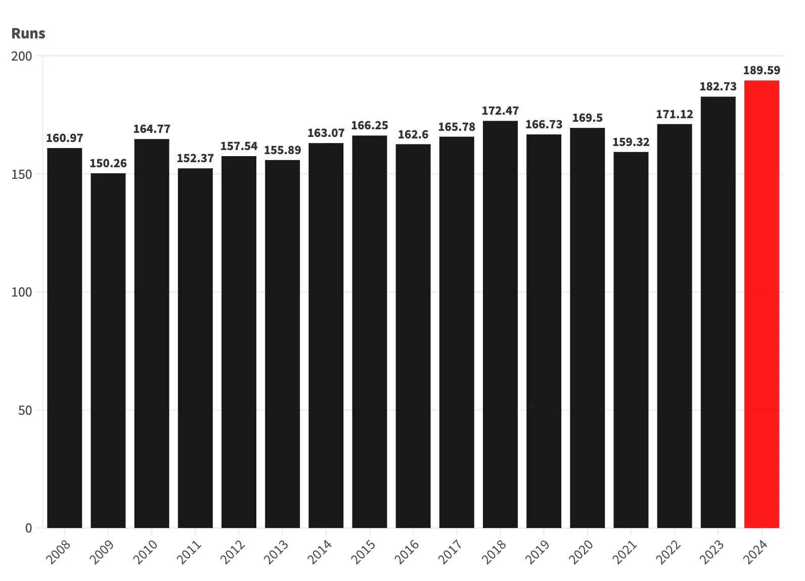 The reason why Gayle states that the saliva ban won’t change anything is because, over the years, the pitches and batters approach have changed. The average first innings in the IPL has been increasing rapidly. Five years ago, in 2020, it wasn’t even 170 runs. Last season it was 190. And given the trend, it will only rise even more, it seems.